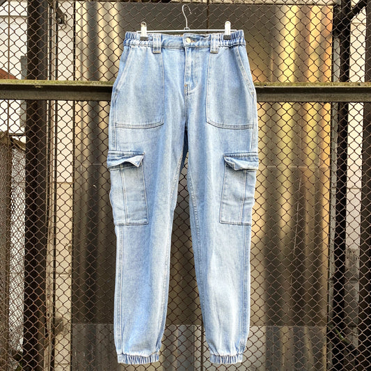 Denim Cargo Pants With Elastic