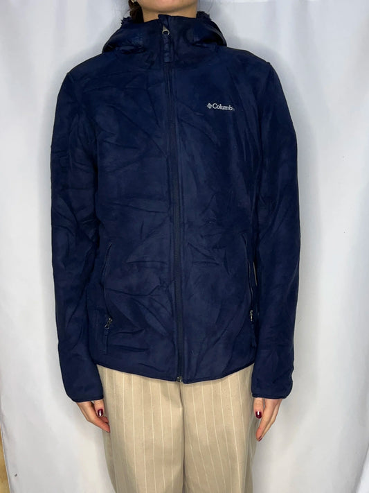 Vintage Columbia Navy Hooded Fleece Jacket